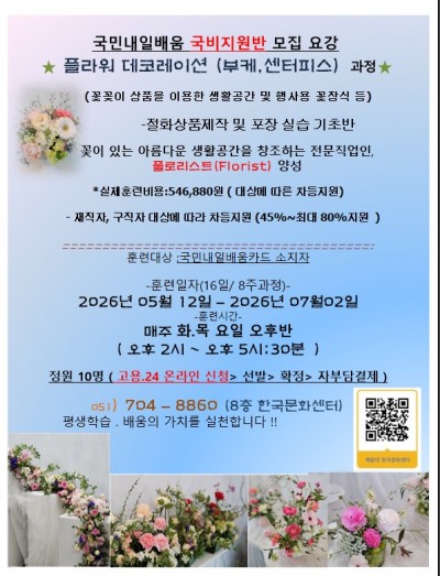 '한국문화센터'는 사단법인 한국문화센터연합회의 문화강좌를 나타내는 고유표시입니다.
