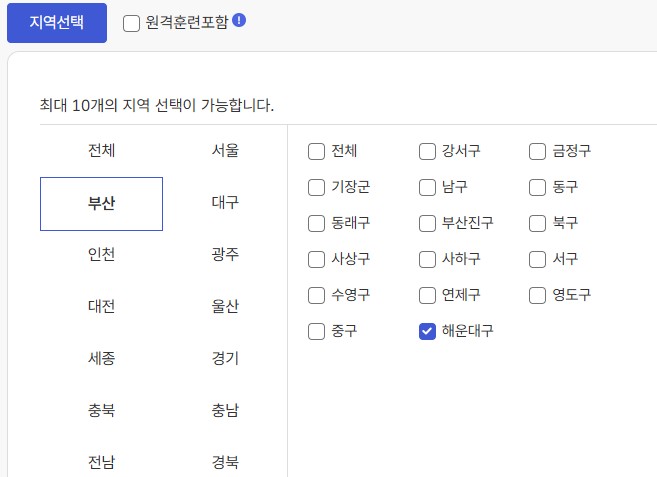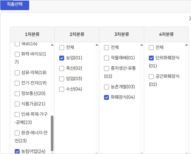 국민내일배움 훈련과정 >>> 직종검색(농림어업. 농업.화훼장식.단위화훼장식) >>>지역 검색 (부산시. 해운대구)