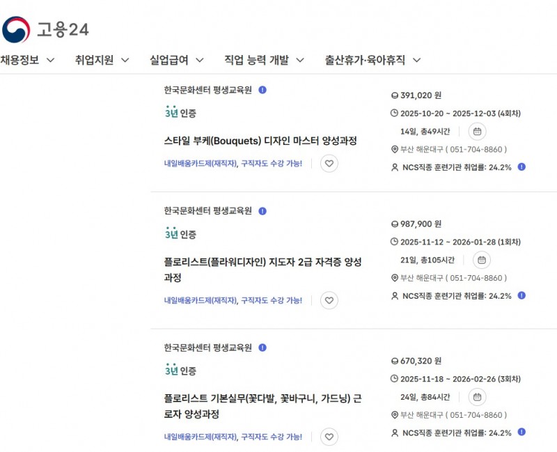 내일배움카드 꽃다발상품제작하기 와 절화상품포장하기