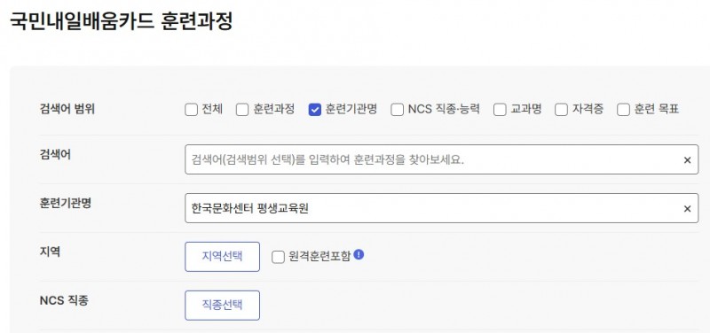 고용24에서 훈련과정을 검색을